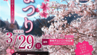 大分県のイベント安岐ダム桜まつり 2026年3月29日(日) 10:00~15:00 *雨天中止 大分県/国東市(安岐町)/安岐ダムいこいの広場 ダム周辺に3,000本の桜が咲き誇ります。(駐車場100台) 当日は、地元グルメやステージイベントなども楽しめます...大分県のイベント