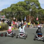 会場には、地元企業が出店する模擬店やフリーマーケットがずらりと並びます。