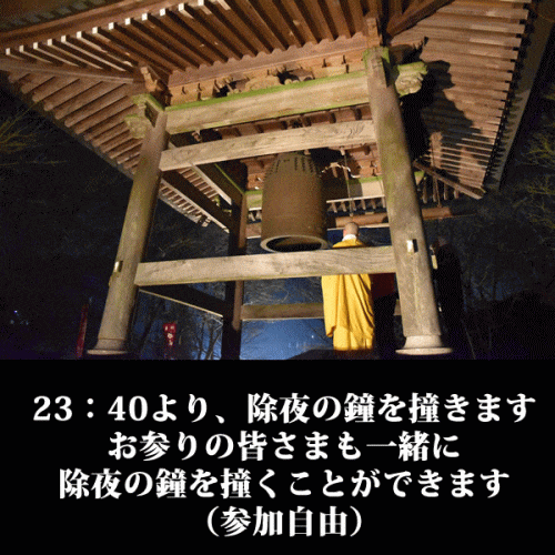 呑山観音寺では、大晦日の午後11時40分から除夜の鐘を撞きます。