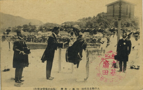 昭和3年(1928)、昭和天皇の即位の大礼において、福岡県は儀式の一つ・大嘗祭(だいじょうさい)に新穀を献ずる主基齋田(すきさいでん)の地に選ばれました。この時の姿を、文書資料で紹介します。また大正大礼時の史料から、華やかな大礼の世界も見ていきます。