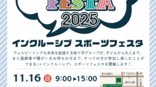 福岡県のイベントインクルーシブスポーツフェスタ 2025年11月16日(日) 福岡県/福岡市(中央区)/りすのこスクエア 11月16日(日)、福岡市中央区のりすのこスクエアにて、ウェルビーイングな未来を創造する桜十字グループが、インクルーシブスポーツフェスタを開催します。 ...福岡県のイベント