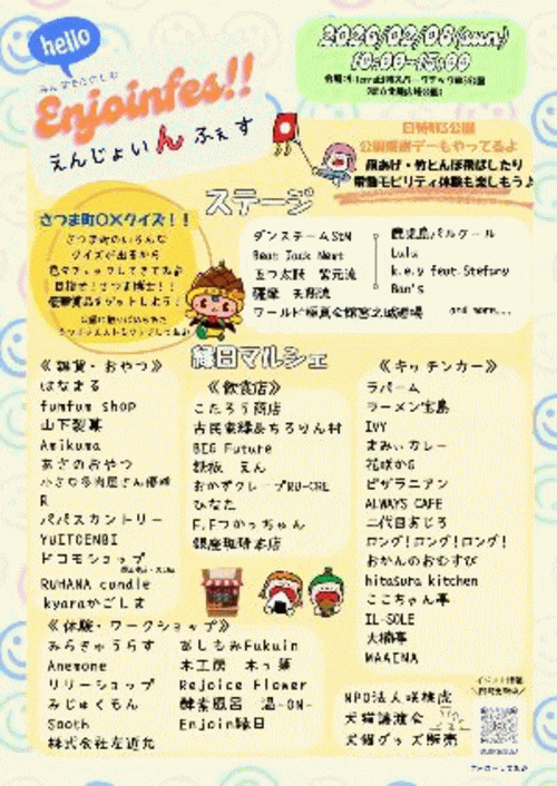 問合せ先:Enjoinfesさつま 公式InstagramのDMへ