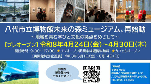 問合せ先:八代市立博物館未来の森ミュージアム TEL 0965-34-5555