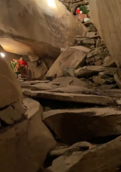 人が一人通れるくらいの岩間を通って中に入ると、洞窟内の至る所に観音・地蔵の石仏が安置されています。