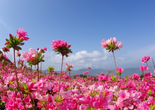 4月中旬~5月上旬には、約11万本のツツジが一面に咲き誇り、不老山がピンク色に染まります。