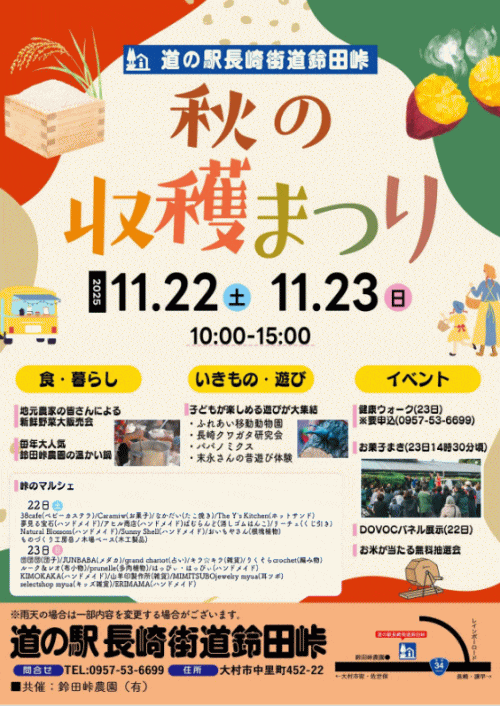 道の駅長崎街道鈴田峠「秋の収穫まつり」を開催します。