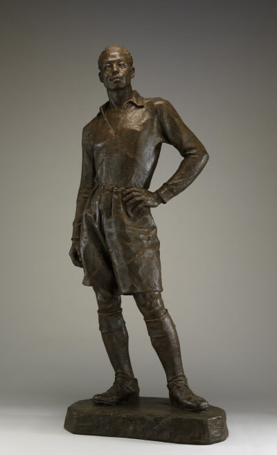 受賞作《殊勲者》《山》《主将》はいずれも若きスポーツマンを題材としたものでした。当時の日展では裸婦像が主流でしたが、富永の作品は堅実な構成と、肉体にみなぎる生命感によって高く評価されました。