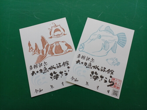 1回300円でガチャガチャを回し、出てきた引換券に記載された生きものの魚朱印をお渡しします。
