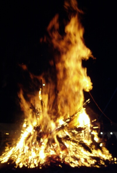 約3,000本の竹を組み上げた高さ約20メートルの巨大やぐらが、轟音と共に真冬の夜空へ燃え上がる圧巻の光景。