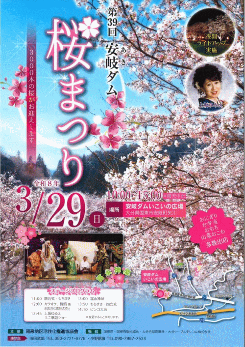 ダム周辺に3,000本の桜が咲き誇ります。(駐車場100台)