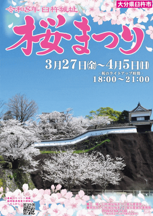 問合せ先:臼杵城址桜まつり実行委員会事務局 TEL 0972-64-7130