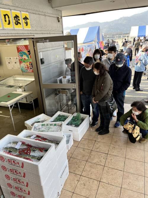 みかん、野菜などの特産品販売コーナーのほか、旬のクロメをはじめとする海産物、関あじ、関さば、関ぶりなどの鮮魚の販売も行われます。