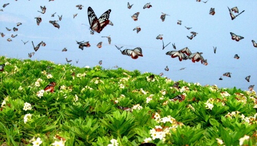 多いときで、約1,000頭ほどのアサギマダラが乱舞する様子を観察できます。