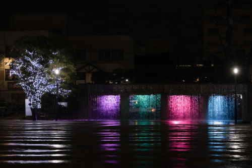 若草公園には噴水を照らす7色のイルミネーションが彩ります。
