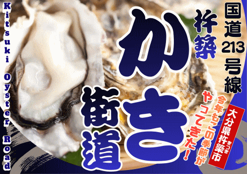 シーズン中(11月頃~2月頃)は、牡蠣の販売はもとより、国道213号沿いに「牡蠣焼き」のお店が並び、「杵築かき街道」として多くの人で賑わいます。