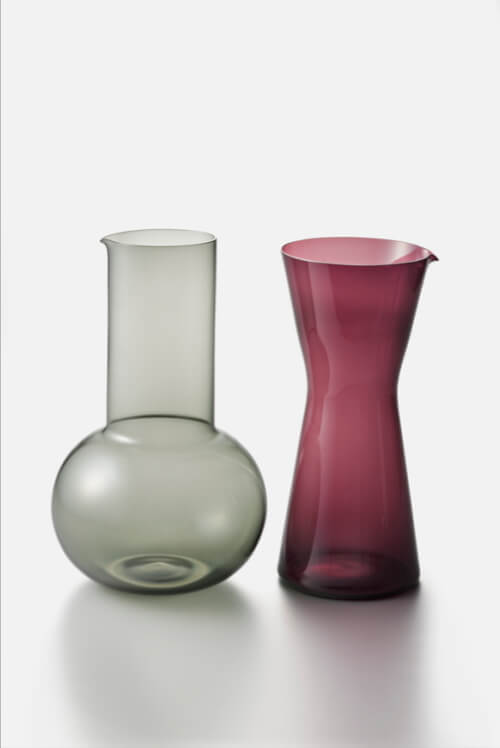 カイ・フランク《1621》(左)1955年、《1610》(右)1954年 カラフェ ヌータヤルヴィ・ガラス製作所 Photo: Rauno Träskelin ©Architecture & Design Museum Helsinki