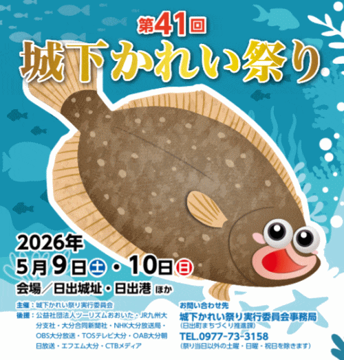 問合せ先:城下かれい祭り実行委員会事務局(日出町まちづくり推進課) TEL 0977-73-3158