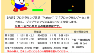 福岡県のイベント福岡県青少年科学館 11月のイベント 2025年11月 福岡県/久留米市/福岡県青少年科学館 ◆プログラミング教室Ⅱ Pythonで作る「ブロック崩しゲーム」 プログラミング言語”Python”で「ブロック崩しゲーム」を作成し、プログラミングの基礎について学習しま...福岡県のイベント