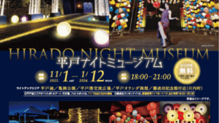 長崎県のイベント平戸ナイトミュージアム 2025年11月1日(土)~2026年1月12日(月・祝) 18:00~21:00 長崎県/平戸市/平戸城、亀岡神社周辺、平戸港交流広場、平戸オランダ商館、鄭成功記念館付近(川内町) *鄭成功記念館付近は、11月16日(日)点灯開始...長崎県のイベント