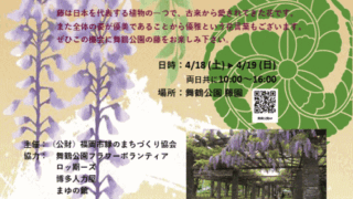 福岡県のイベント舞鶴公園藤まつり 2026年4月18日(土)~19日(日) 10:00~16:00 福岡県/福岡市(中央区)/舞鶴公園 藤園 見頃に合わせ、植物を使ったワークショップや着物体験、人力車体験、キッチンカーの出店などを予定しています。 【料金】 無...福岡県のイベント