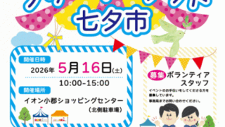 福岡県のイベント第72回 小郡フリーマーケット七夕市 2026年5月16日(土) 10:00~15:00 *少雨決行 福岡県/小郡市/イオン小郡ショッピングセンター 北側駐車場 小郡市内外から約120の出店者が集い、手作り雑貨や洋服などたくさんの商品が並びます。 掘り出し物が見つ...福岡県のイベント